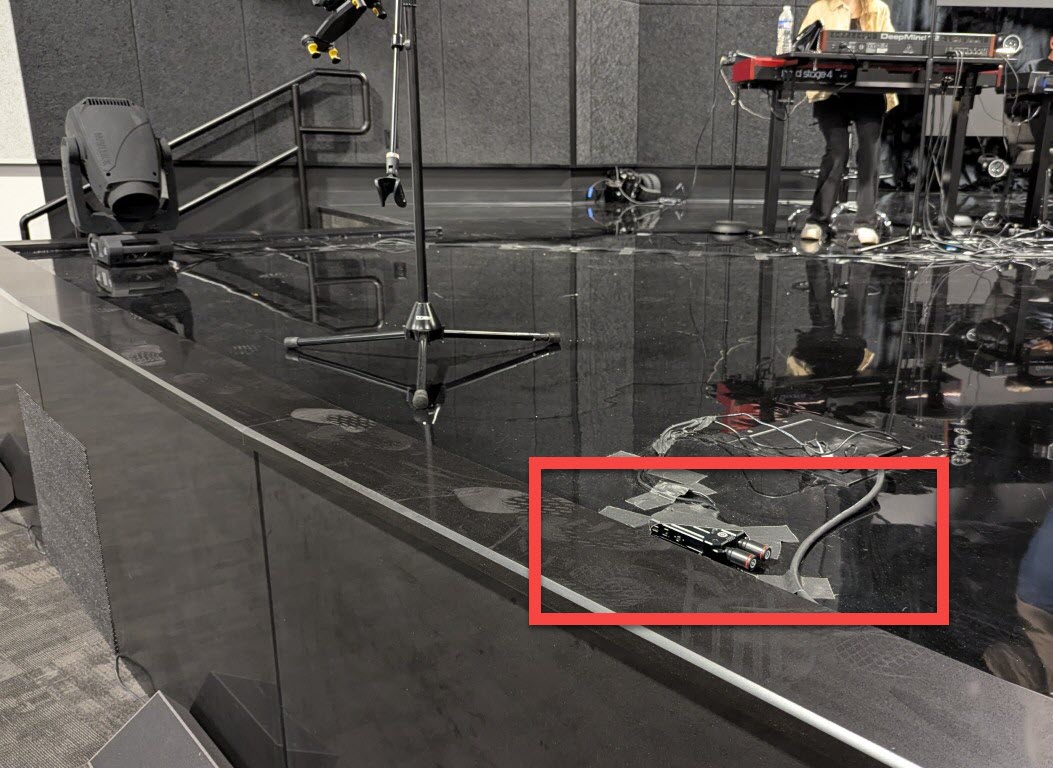 - They are either taped at the edge of stage or in case of glide cam, it is hiding inside the floor box.
