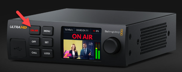 You also have an option to go “ON AIR” and “OFF” by using the Blackmagic Web Presenter app. Use what is more convenient for you.