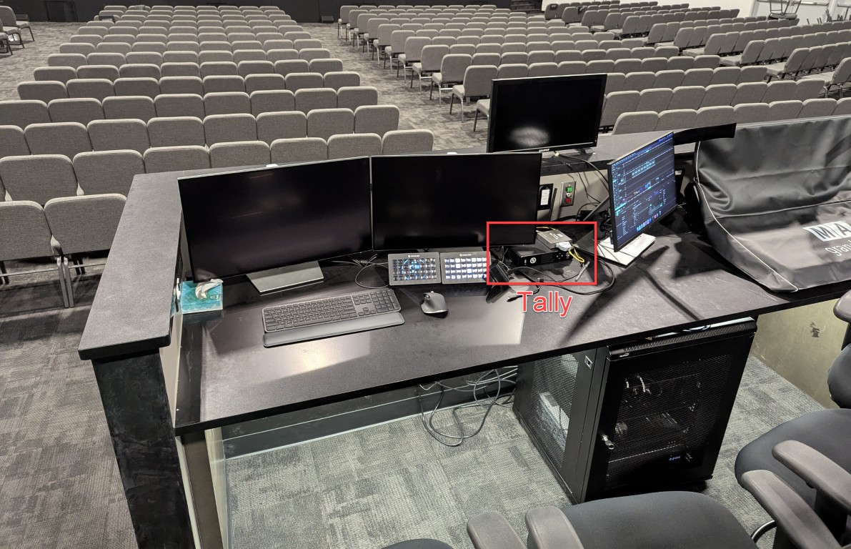 This system has a main base station which is connected in the sound booth for better signal.